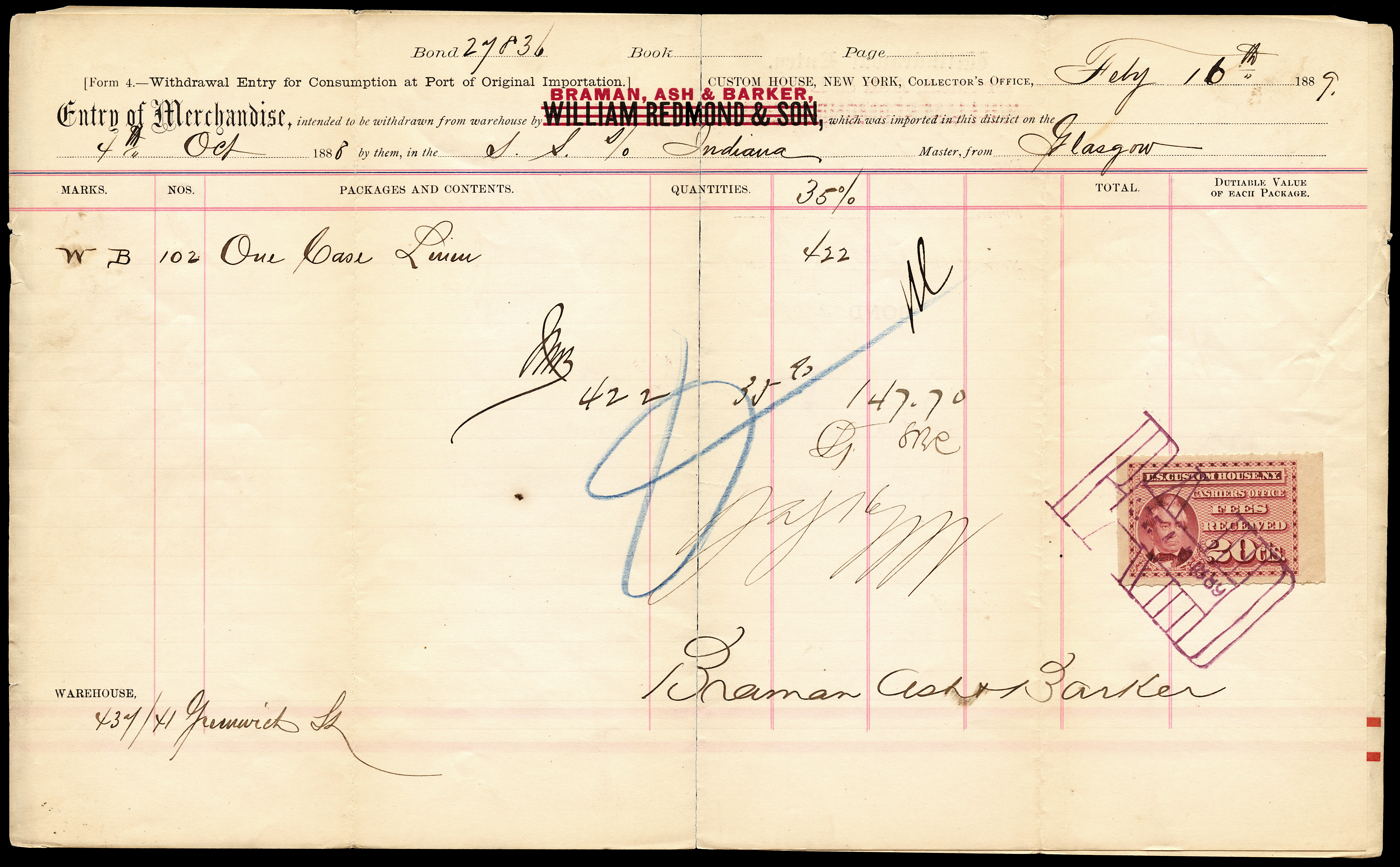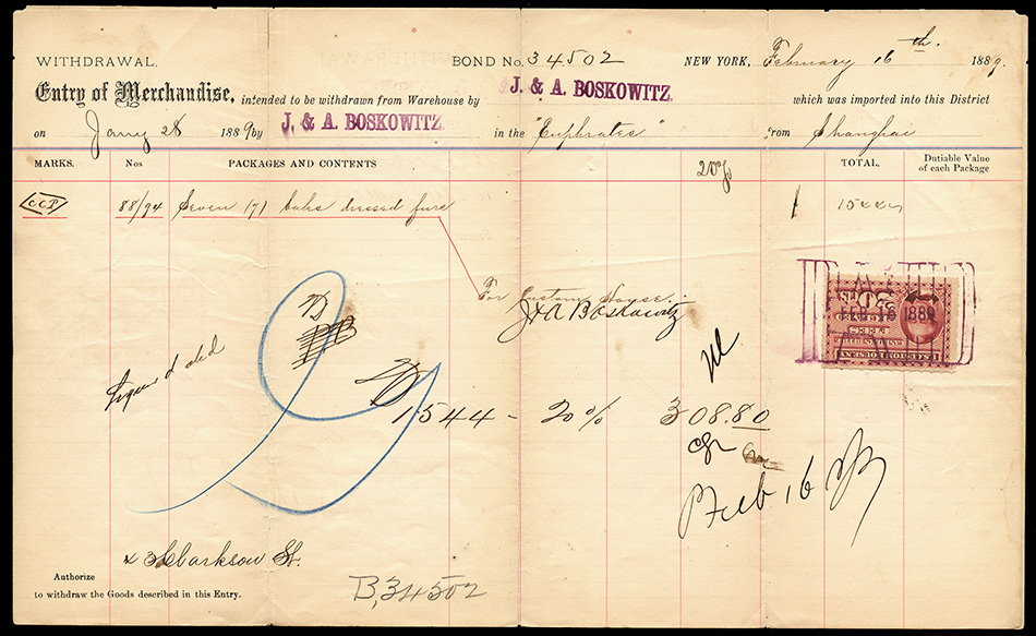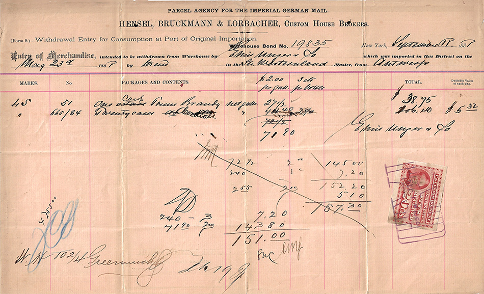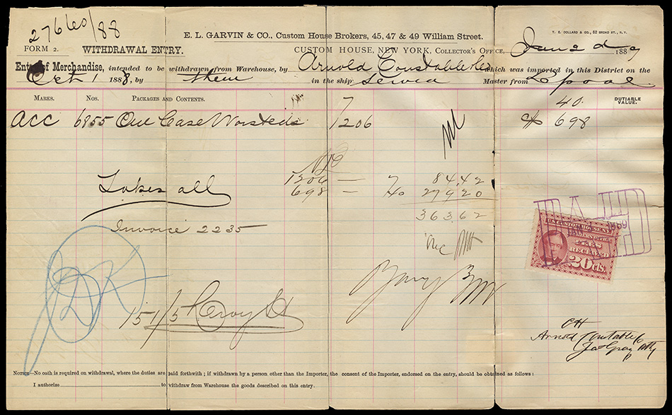 Note: The variety in form numbering across the withdrawal of entry forms implies to me that the form numbers were internal to the procedures of each individual company, not universal to the New York Custom House.