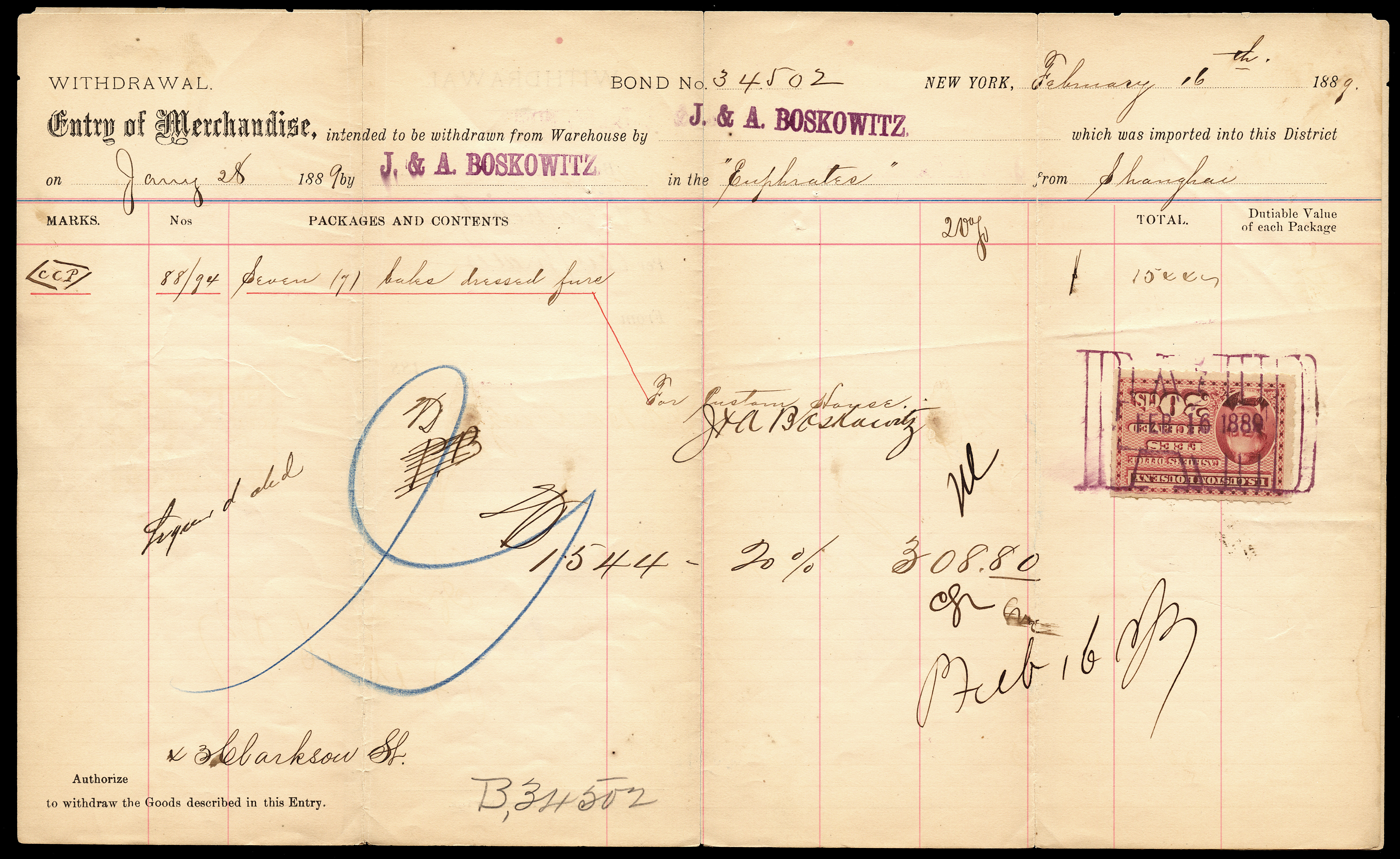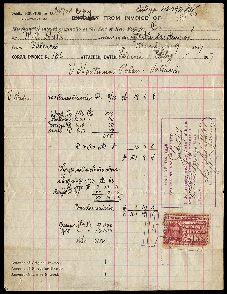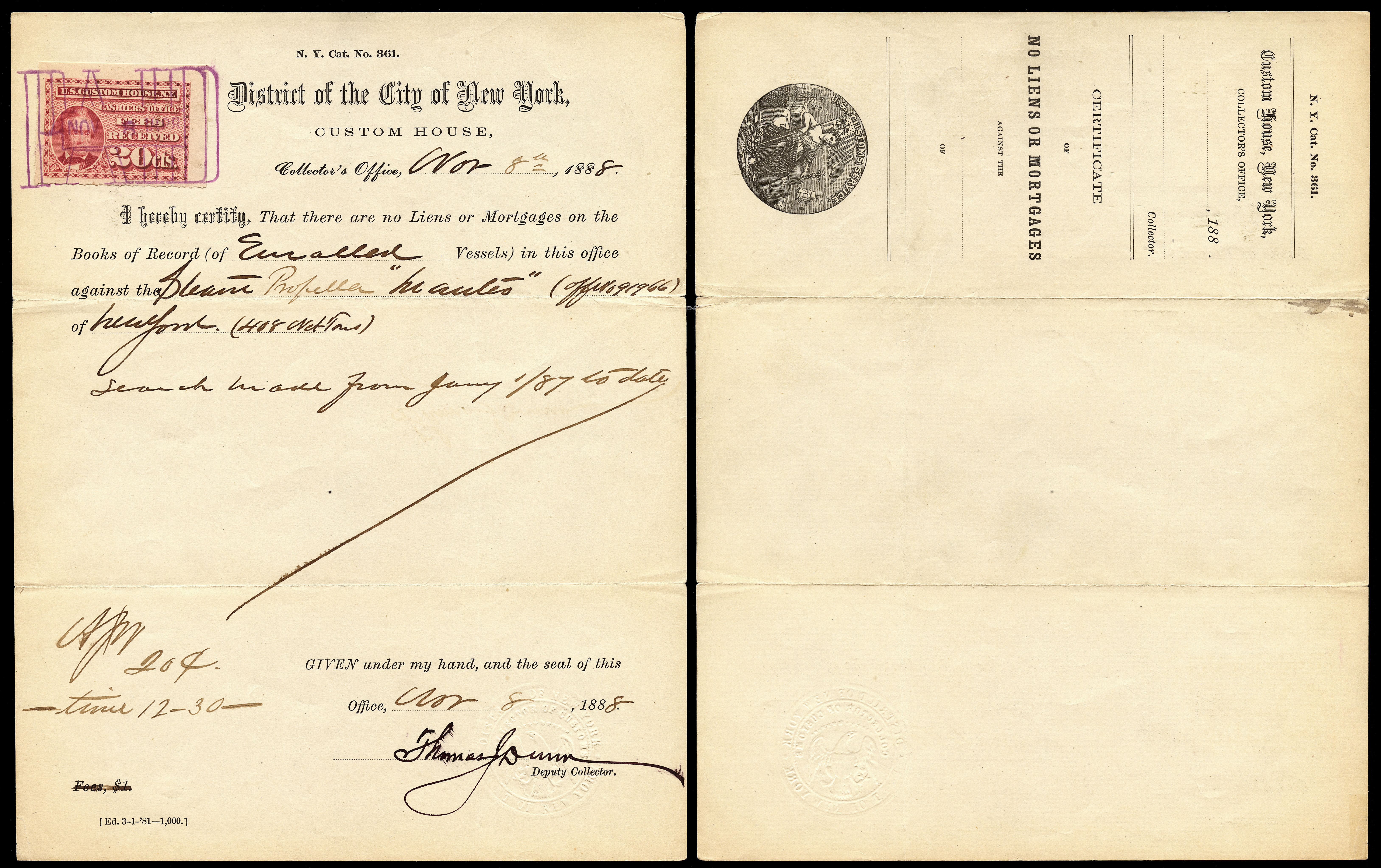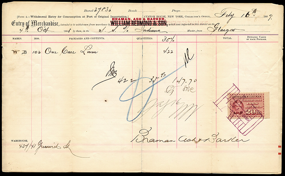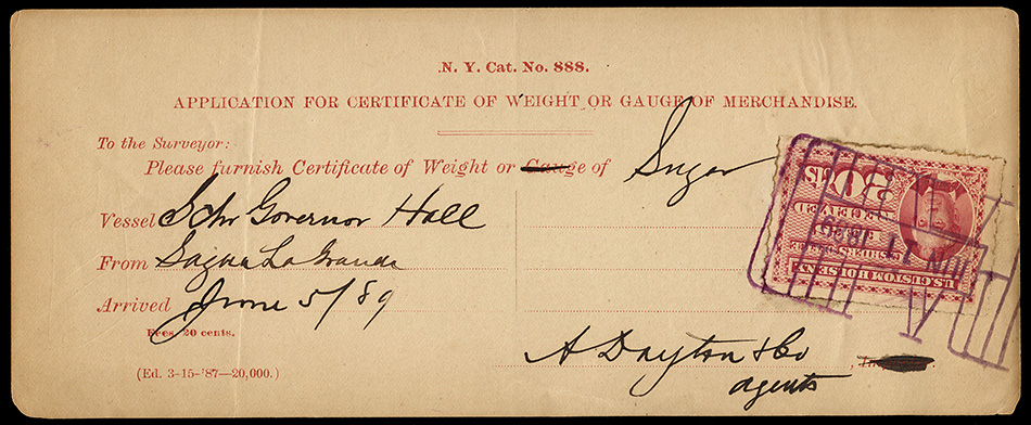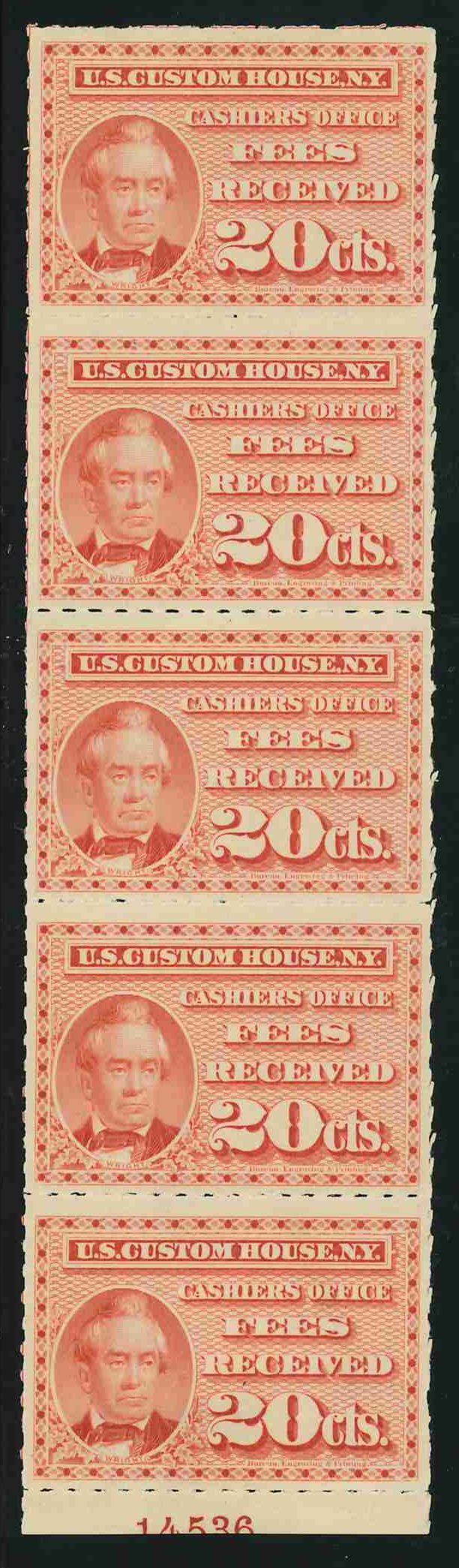 I found it interesting that while these are categorized as federal revenue stamps, their use was relegated solely to the New York Custom House... not any of the other major port cities. Why were they not adopted or mandated elsewhere? Insufficient volume of traffic to justify doing so?