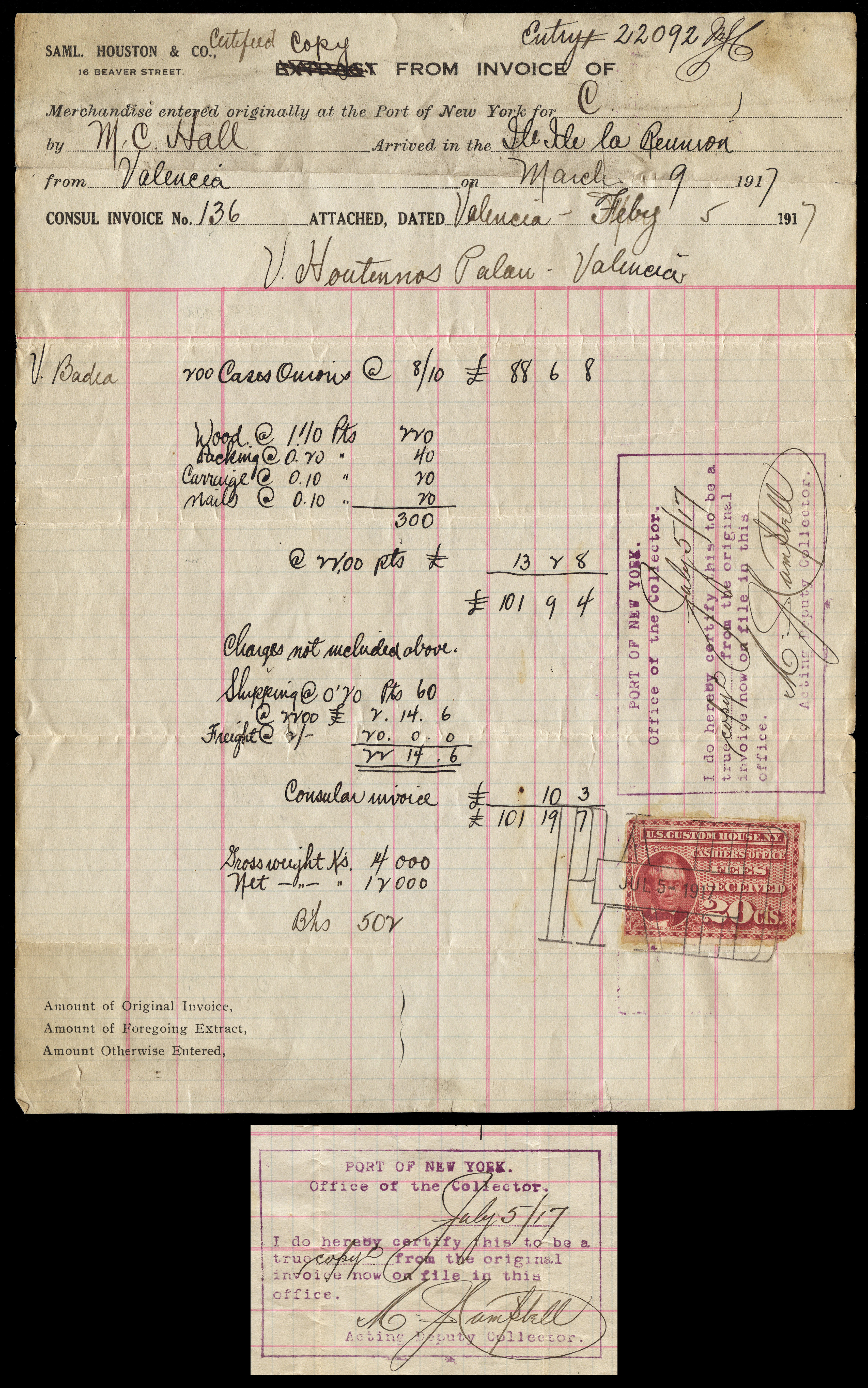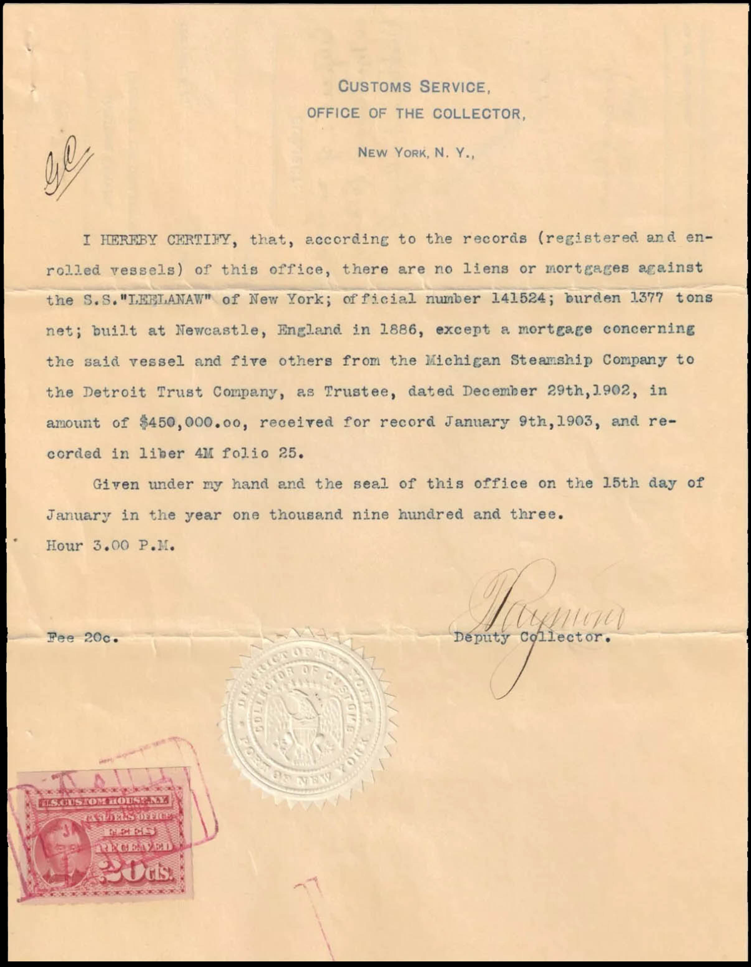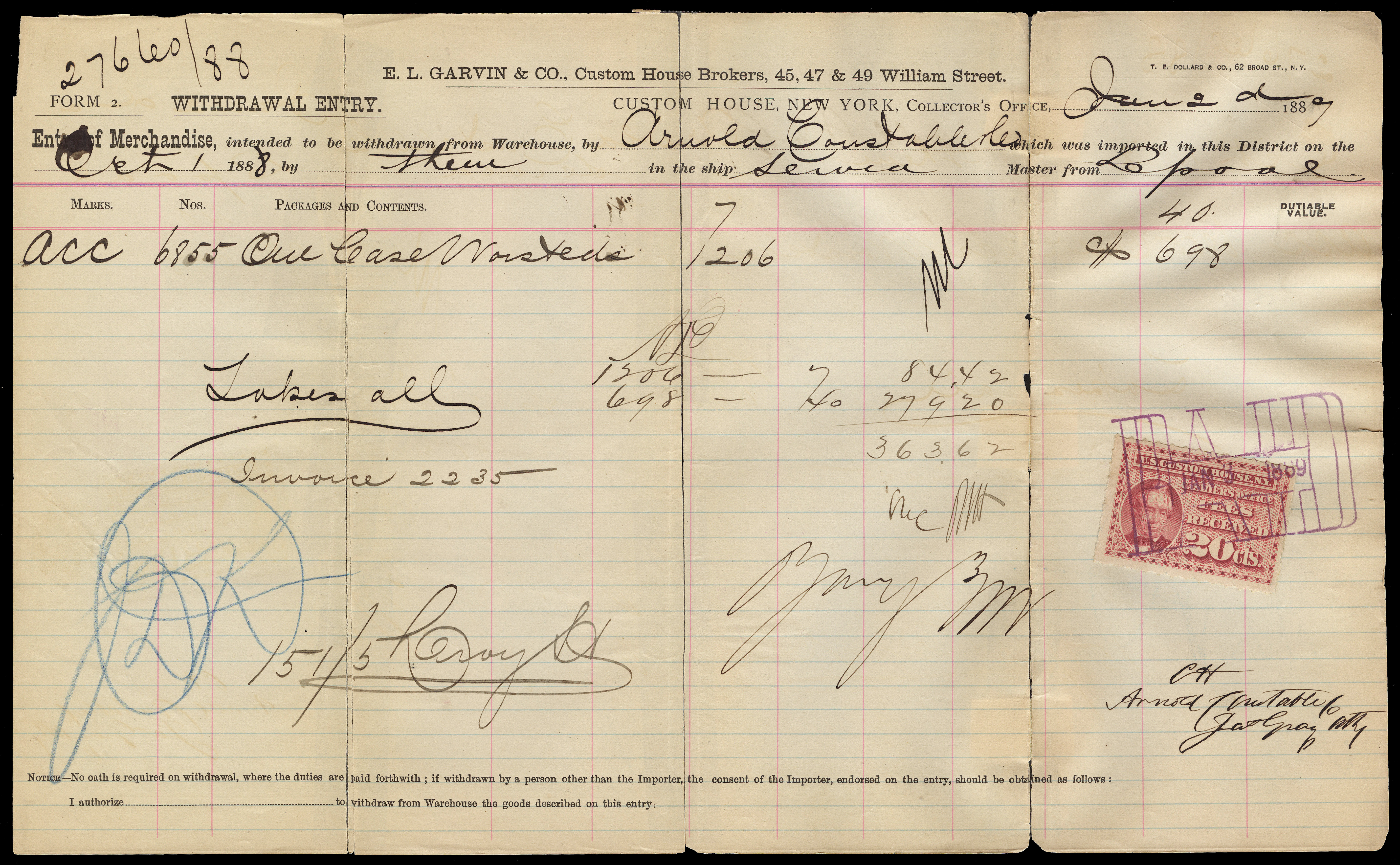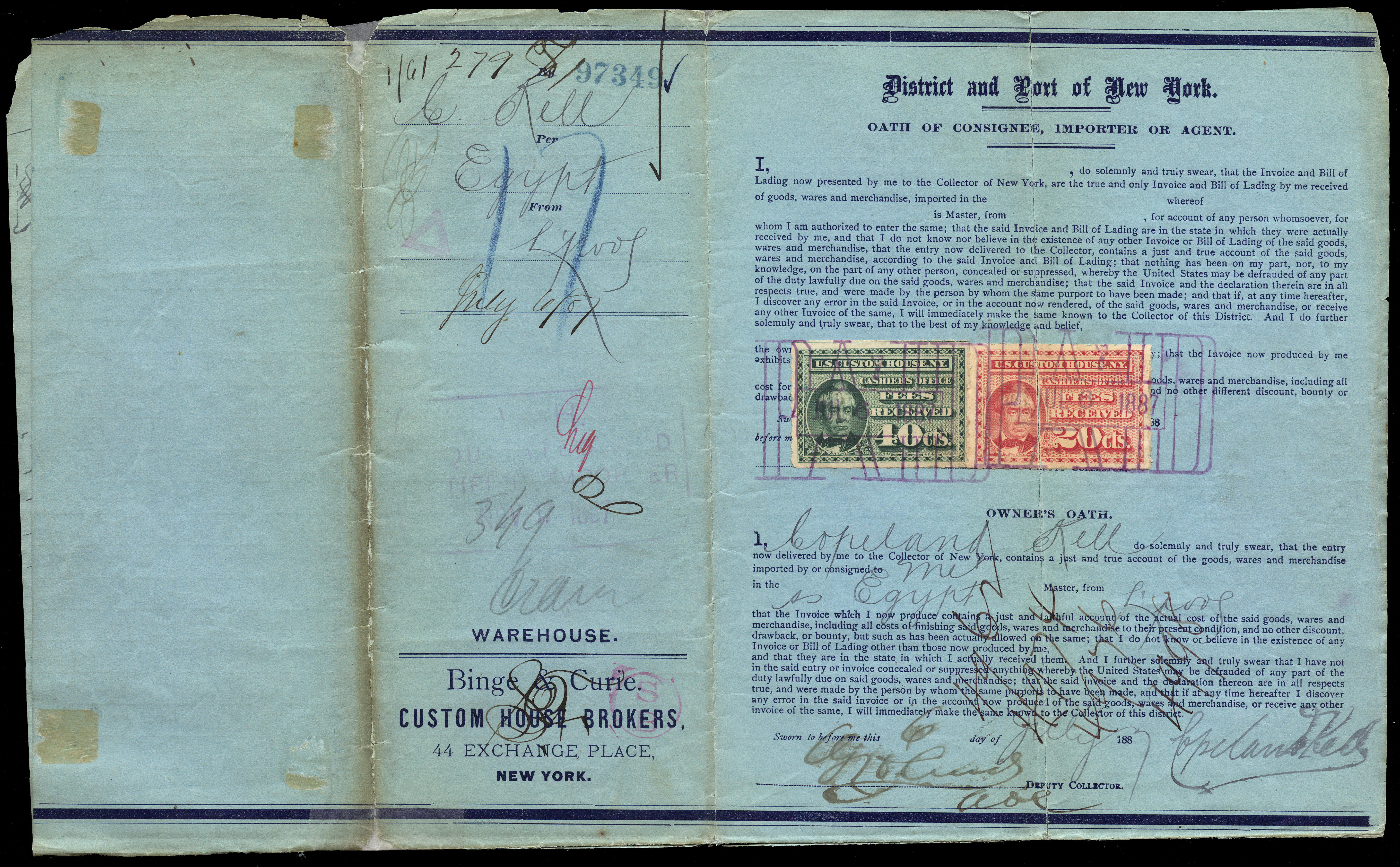 Collector of Customs, New York.