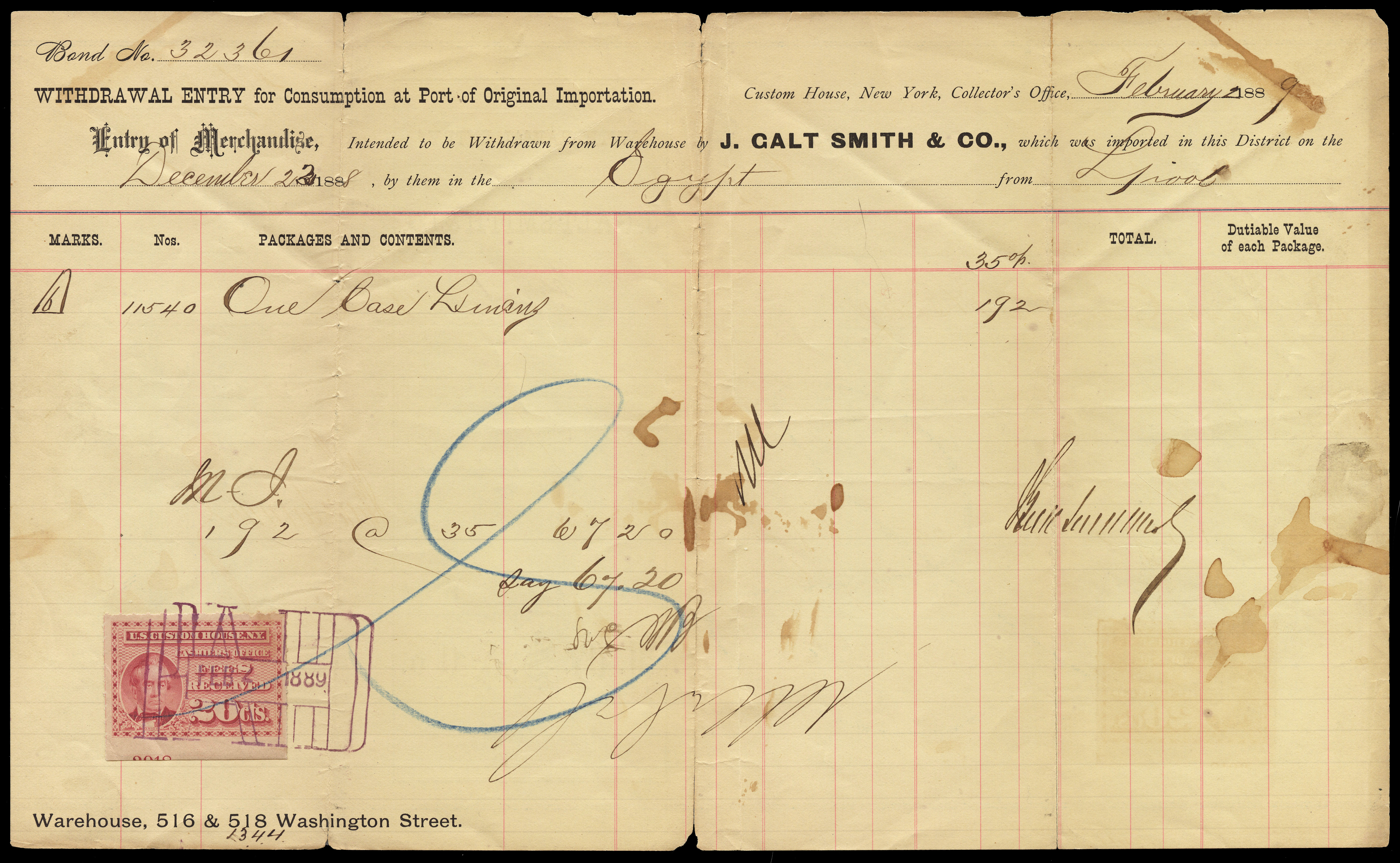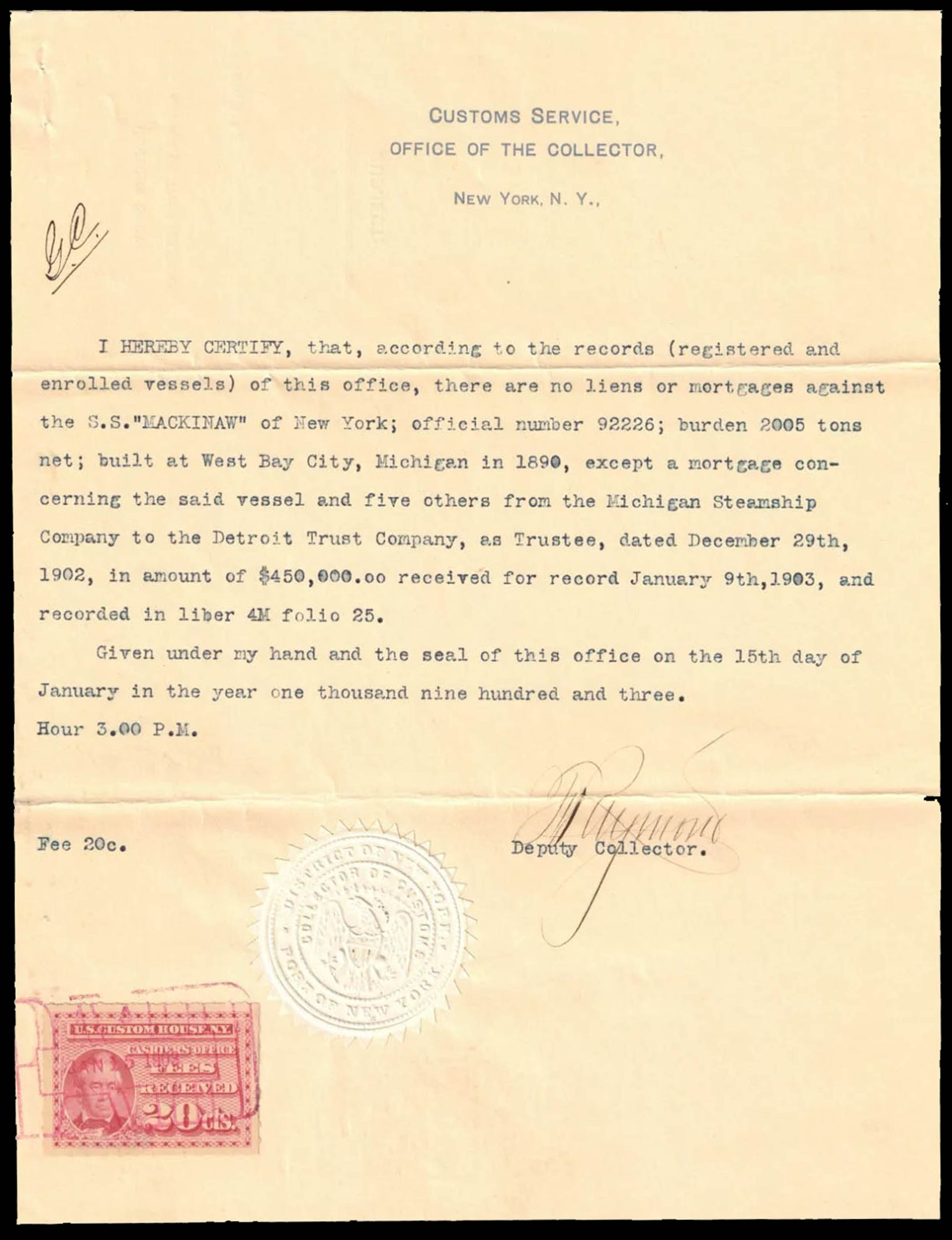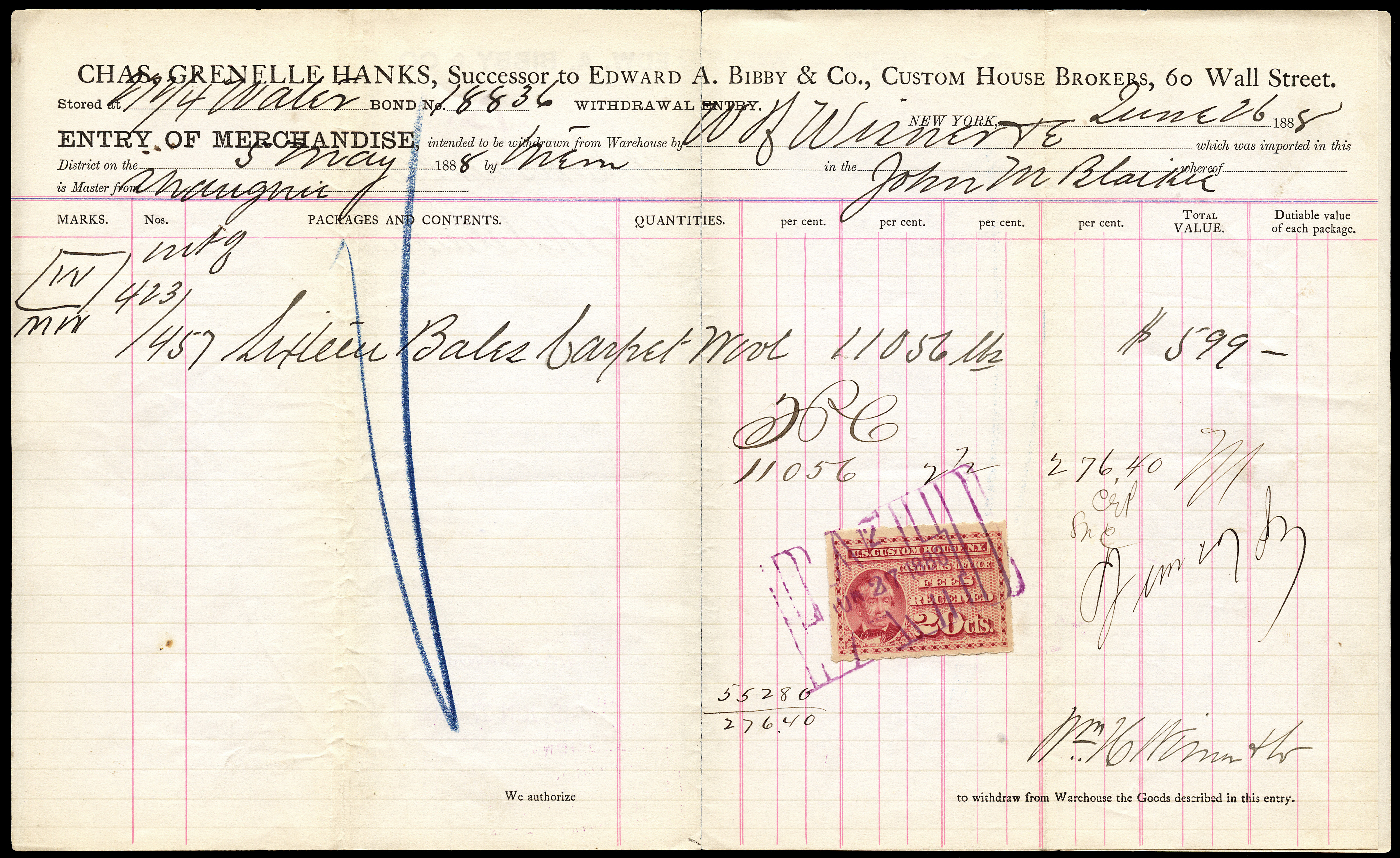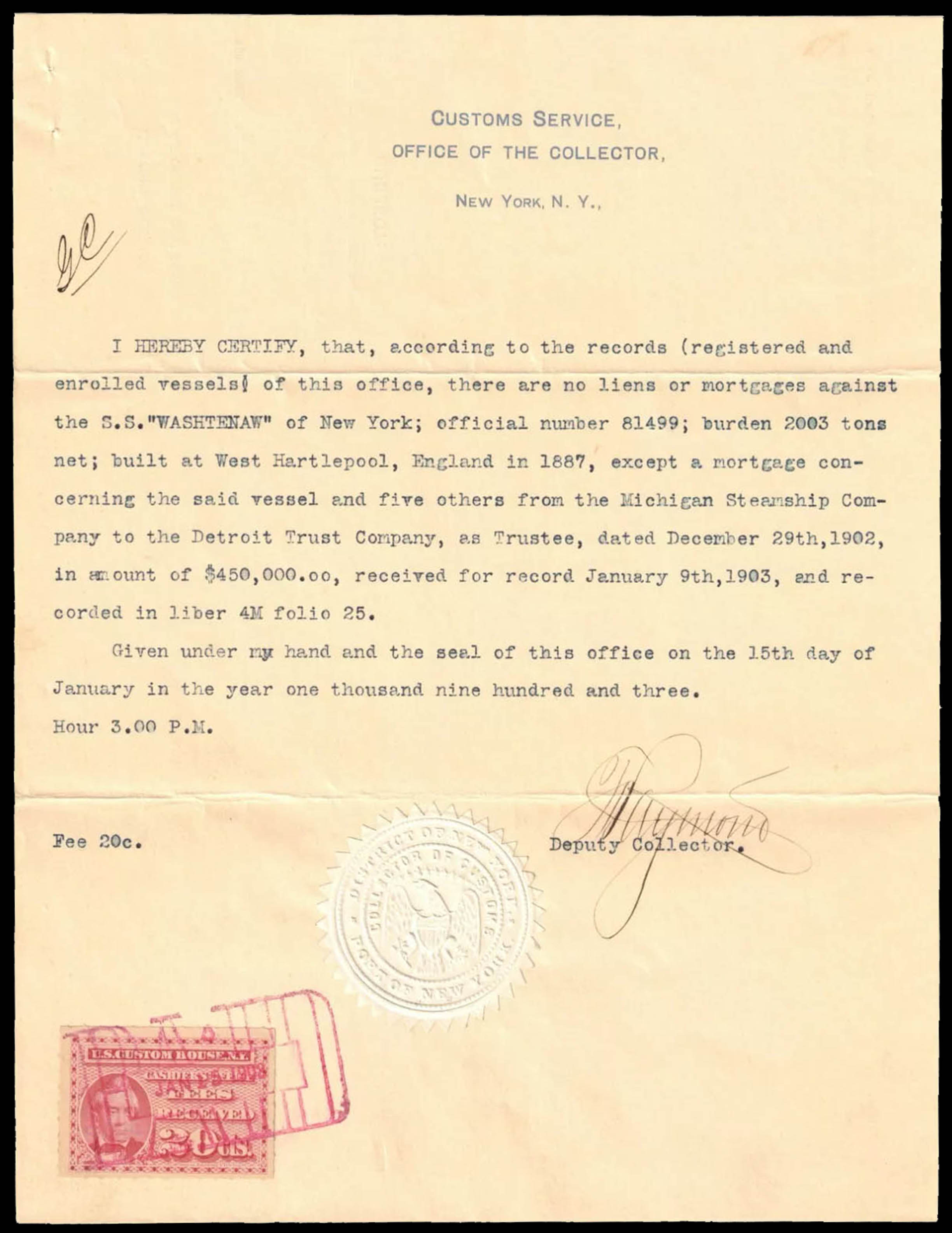 Collector of Customs, New York.
