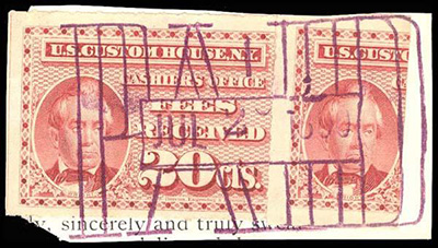 After this I started contacting other experienced revenue collectors and dealers to find out what they had or had not seen over the years with respect to this series, and started digging through auction catalogs and archives. There also was uncertainty as to what exactly the fee schedules were that these stamps paid, so I started digging into that as well.