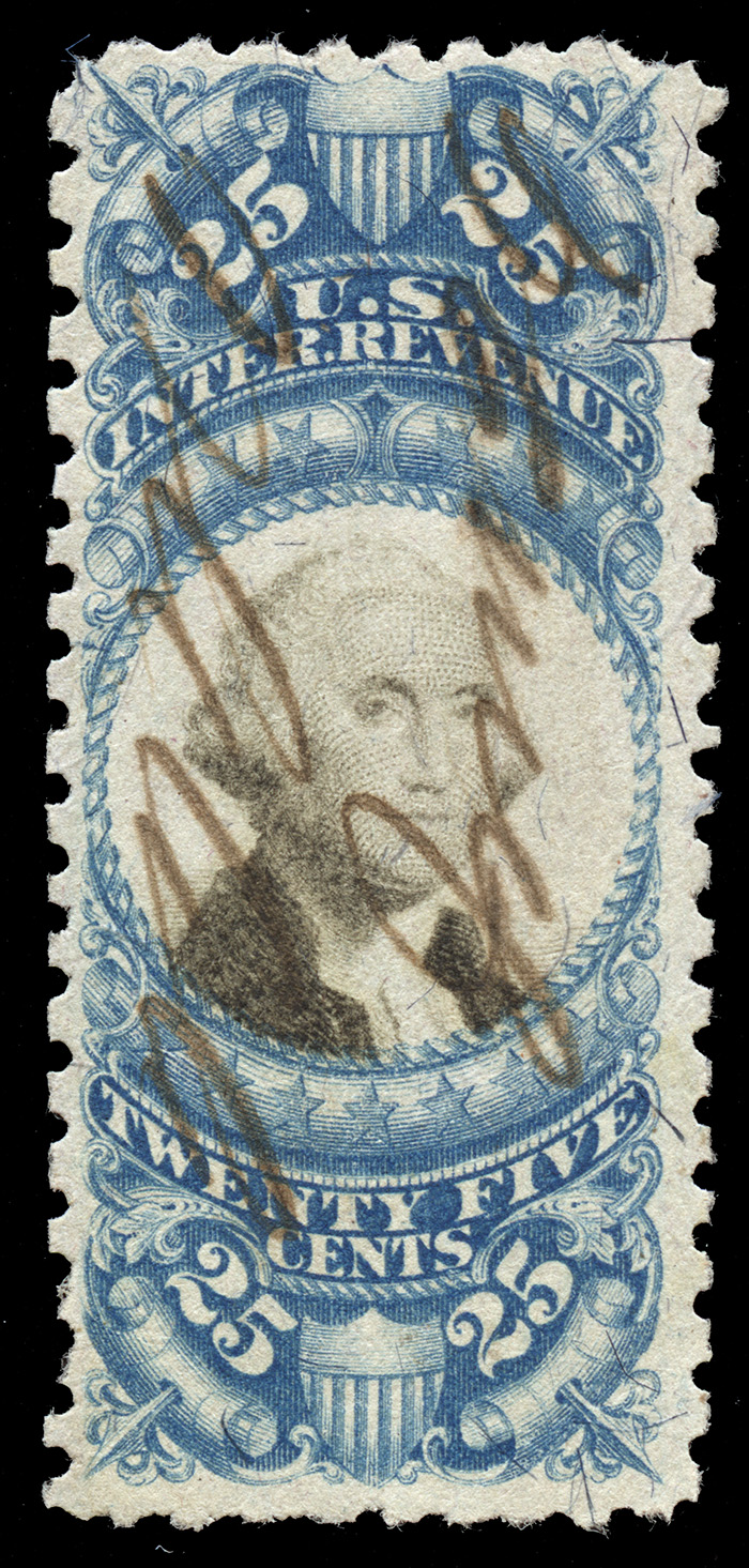 These are the revenue stamps and documents in my collection that "jump off the page" at me... the best of my collection. I may have chosen them for any number of reasons, not necessarily the condition of the stamp. It might be the particular color shade of the stamp, or perhaps a particularly sharp cancel strike, a fancy cancel, the contrast between the colors of the cancel and the stamp, or simply something I found to be interesting.